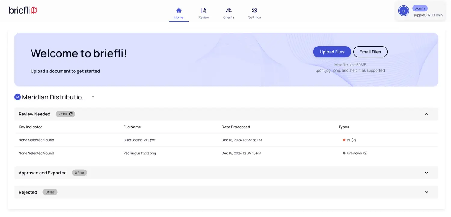 Briefli uses AI and a few other secret ingredients to read BOLs, packing lists, SKUs, and lot codes—then enters everything directly into your WMS. You click just one button to send it to your system!